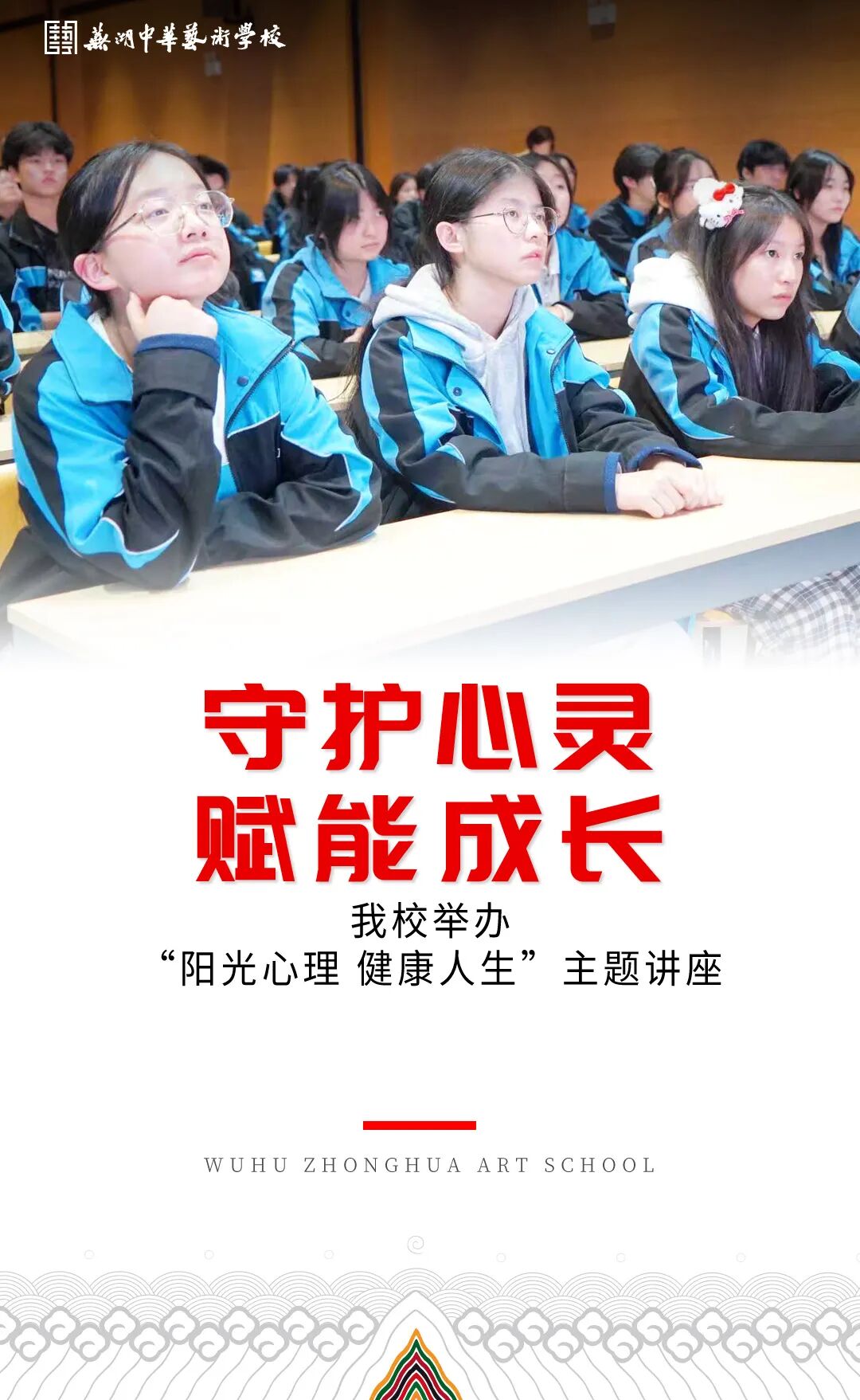 守护心灵,赋能成长 | 我校举办“阳光心理 健康人生”主题讲座 心理健康是青少年茁壮成长的根基,是追逐梦想、成就未来的核心力量。为加强学生心理健康教育,培育学生积极乐观、健康向上的心理品质,10月29日下午,芜湖中华艺术学校特邀芜湖鸠兹护航团主讲人陈黛薇老师,为高一、高二年级学生带来了一场深刻而又生动的“阳光心理 健康人生”主题讲座。 讲座伊始,陈黛薇老师从多个真实案例入手,深入浅出地阐述了“好成绩=好心情+好方法+发挥优势”的成长公式。她通过生动详实的案例分析,让同学们深刻认识到良好的心理状态、科学的学习方法和个人优势的充分发挥,是取得优异成绩不可或缺的三个要素。 在讲座中,陈老师重点讲解了情绪管理的重要性。她教导同学们如何正确认识情绪、深入了解情绪,并学会恰当地表达情绪。通过专业的指导和互动练习,同学们掌握了培养阳光心理的有效方法,为健康成长奠定了坚实基础。 整场讲座内容丰富、形式活泼,现场气氛热烈。同学们在陈老师的引领下,进行了一场深入自我探索的心灵之旅,不仅收获了实用的心理调适技巧,更对如何面对未来的学习与生活挑战充满了信心。 此次讲座是我校全面落实“五育并举”,高度重视学生心理健康教育的切实体现。未来,学校将继续营造关注心理健康的良好氛围,通过系列主题活动,为每一位学子的健康成长与幸福人生奠定坚实的心理基石!
