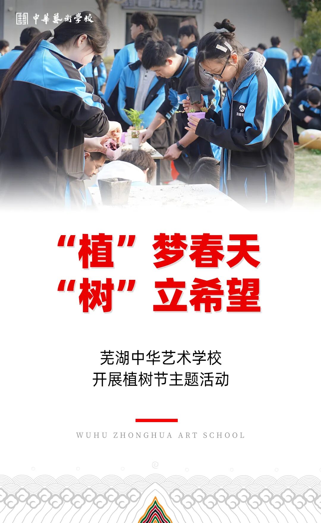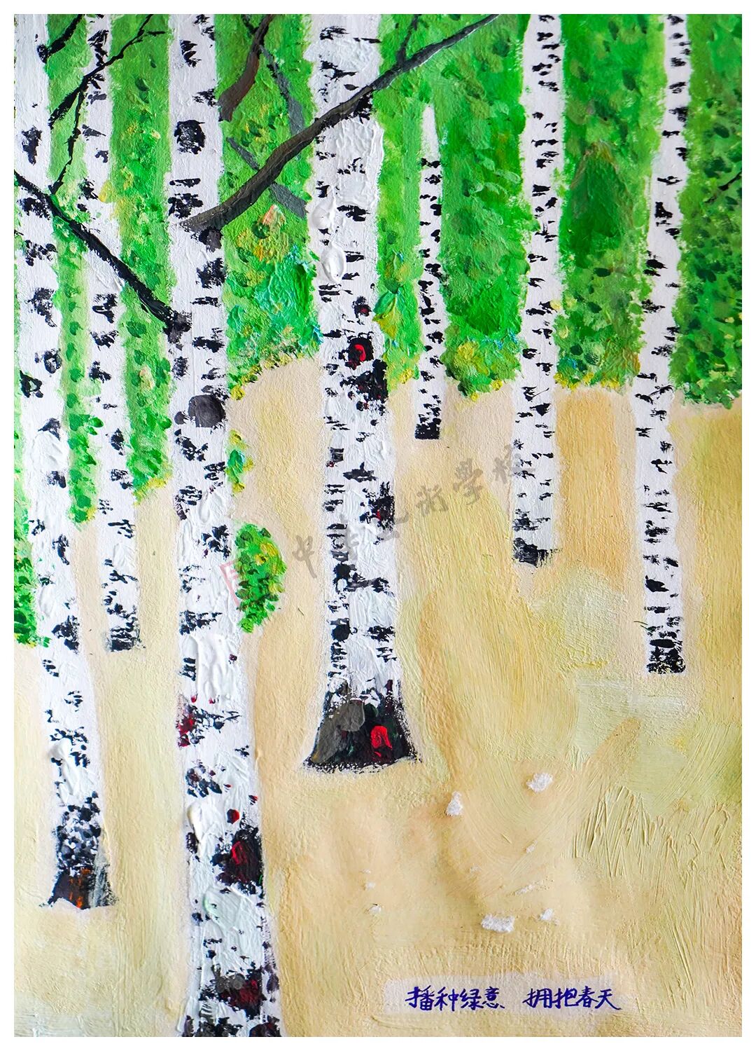 这个植树节,把春天种进校园,把春光绘进画卷! 春回大地,草木蔓发。在这个孕育希望的季节,我们迎来了第46个植树节。 我校开展了一系列融合生态文明理念与美育教育的植树节活动。同学们执笔为锄,以心为壤,在躬身实践中感悟生命力量,用艺术笔触传递护绿初心,让绿色希望在校园扎根生长,让艺术之美与自然之美双向奔赴。 携手植新绿 校园添生机 妙笔绘绿意 艺术诉热爱 躬身植绿践初心,妙笔生花传热爱。围绕“植绿护绿”主题,同学们发挥艺术特长,用灵动线条、绚烂色彩,勾勒春日美景、描绘植树场景、畅想生态家园,将环保理念融入画作之中,让绿色的希望在画作中绽放,让护绿的种子在心底发芽。 青春与树苗共成长,艺术与绿意常相伴 本次植树节系列活动 将环保实践、劳动教育与美育深度融合 不仅为校园增添一抹青绿 更让学子在亲身实践中体悟成长的意义 未来愿中华学子 向下,扎根沃土,踏实沉淀 向上,迎接阳光,艺路繁花 |